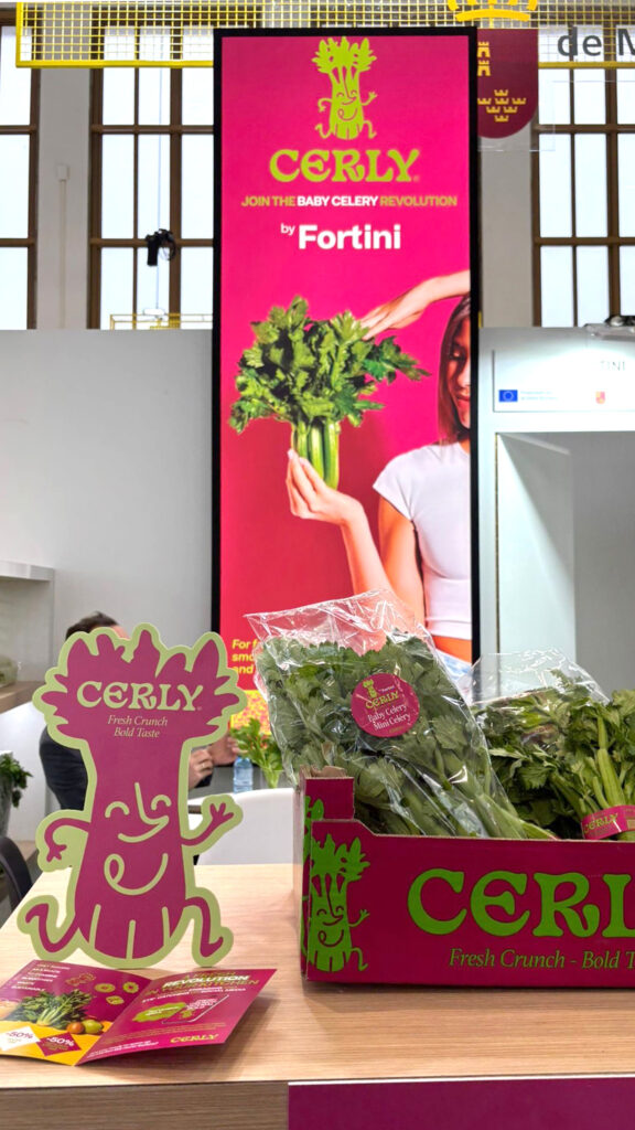 El gran protagonista de la feria fue la presentación en primicia de Cerly, la nueva marca de Fortini que introduce un mini apio exclusivo a nivel europeo. Este innovador producto destaca por sus múltiples propiedades, su versatilidad culinaria y su tamaño diferencial, cualidades que lo posicionan como una auténtica revolución para el mercado y una solución ideal para recetas saludables y nuevos hábitos de consumo.
